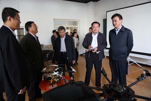 在无人机创客空间,调研组一行了解无人机操的创新理念、核心技术等方面的情况,对我校学生自己设计组装的无人机的使用规模及研发理念给予了高度认可。
