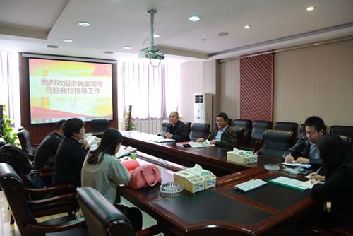 10月20日,市民委督查调研组市民委民族事务科科长谢彦等一行三人来我校督查民族团结进步活动月开展情况,院长任雁秋、宣传统战部部长赵永旺一同座谈。
