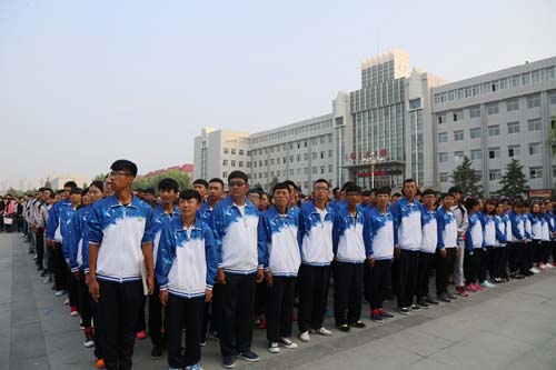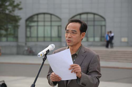 全校在校生及部分教师齐聚广场,党委委员、副院长张延明出席并讲话,党委委员、副院长辛利民主持。
