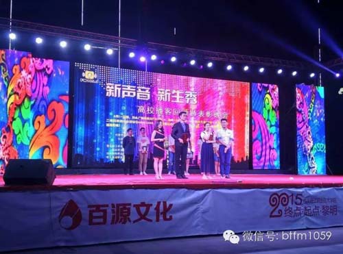 6月29日晚,历时两个月的包头广播电视台FM105.9“新声音、新生秀”包头高校播客展播比赛在学校行知广场落下帷幕。学校播音指导教师、公共服务学院韩博老师,参赛学生代表、大学生通讯社张志林同学及其他六所高校的师生代表参加了颁奖仪式。