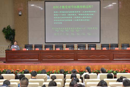 吉林大学生物与工程学院院长、博士生导师杨印生教授作了题为《学历提升与成功要素》的继续教育大讲堂专题讲座。杨教授的专题讲座主要从学历与学位、学历教育的特征与功能、为什么需要学历再教育、学历教育的作用多视角的思维模式、如何才能受用学历教育的过程、成功的含义、前微软中国总裁唐骏的“成功4+1理论”、关键在于如何实现目标、关于个人成功的要素等方面进行讲述。