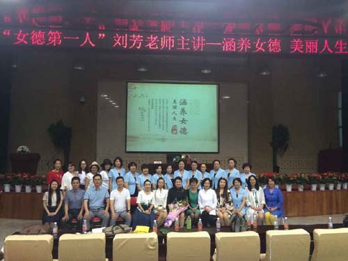 刘芳,芳子美容创始人,青岛市美容美发行业协会会长、青岛市女企业家协会理事。她师从蔡礼旭老师学习和弘扬传统文化,宣讲女德上百场,被誉为“中国女德讲师”第一人。讲座中,刘芳老师把现代女性所必要的德行修养与传统文化《弟子规》相结合,阐述了女子应该担当的责任,以及如何打造一个有涵养且智慧的女子形象。在现场的问答互动环节,刘芳老师教会大家生活中的智慧,如何正确把握情感,如何与父母相处融洽。
