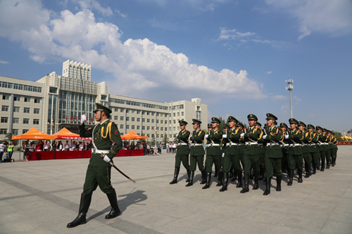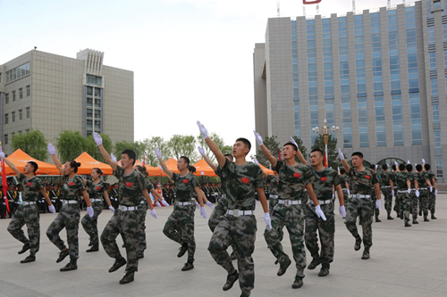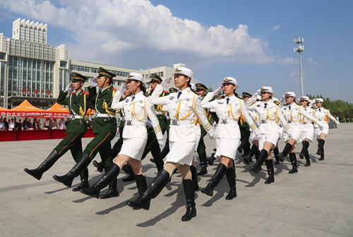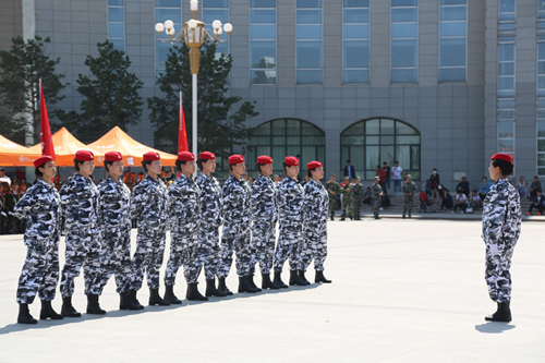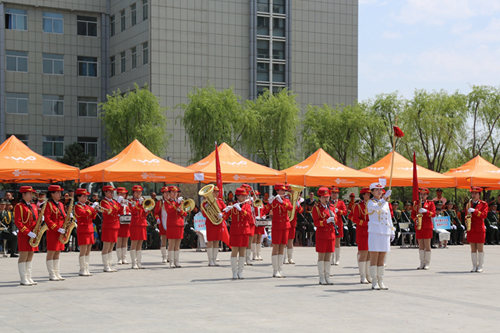 升旗仪式后,各高校国旗护卫队分别进行了文艺演出、分列式、队列队形变换等表演,他们步伐整齐、口号嘹亮,展现了国旗护卫队特有的风貌。我校国旗护卫队和女子管乐团的队员们以高度的热情、整齐的步伐、认真的态度及精彩的表演赢得了现场观众和各高校国旗护卫队的一致好评和阵阵掌声。
