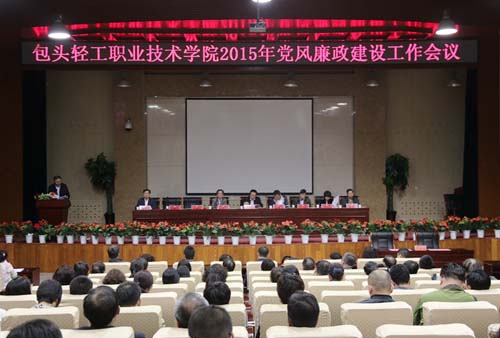 5月14日下午,我校召开了2015年党风廉政建设工作会议。全体在校校领导出席会议。纪委委员、副处级以上干部、关键部门和岗位人员、纪检监察审计人员及党风廉政建设宣传教育工作先进集体代表和先进个人参加了会议。党委委员、副院长张延明主持会议。