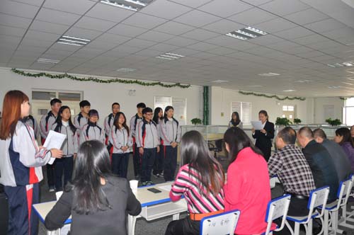 现场,学生朗诵了弟子规,利用实训技能,给父母打一个电话,说一句“我爱您”,并为父母共唱一首“感恩的心”。同学们向父母表达了深藏心底的话,有很多同学说到动情处流下了感恩的泪水,到场的老师们也被学生的真情实感所触动。