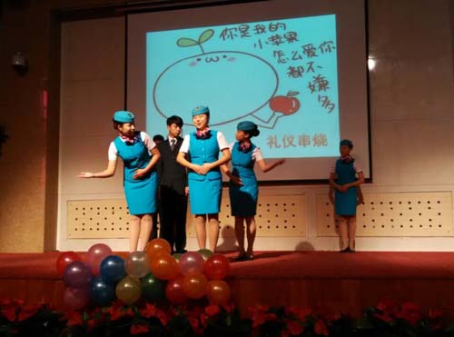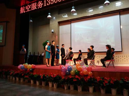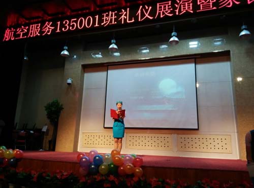 航空服务专业135001班是五年制大专班,经过在校一年半的学习,同学们在各个方面都有了长足的进步。为了向学校和家长们汇报他们的学习、生活、成长过程,展示他们的礼仪风采和专业特长,特意编排了这样一台演出。