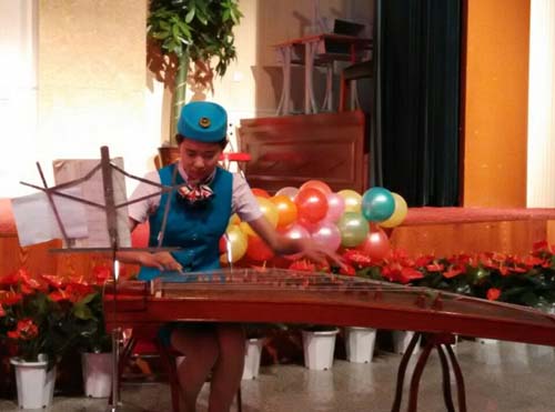 演出形式是全班37人分成六个航空乘务组,身穿航空制服表演航空礼仪服务过程,其间还穿插了文艺表演。学生们整齐到位的专业动作、精彩的文艺表演赢得了家长和师生们热烈掌声,家长们又是拍照又是录像,纷纷赞不绝口。