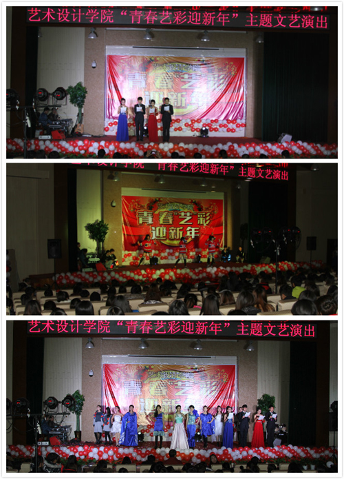 12月22日,为丰富校园文化建设,提升学生人文素质,展现学生精神风貌,艺术设计学院举办“青春艺彩迎新年”文艺演出。装潢小高职115006班的激情开场舞中拉开了晚会的帷幕,三句半、小品、器乐表演、服装模特秀等精彩的节目为全院师生呈现了一场丰盛的视听盛宴。