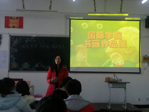 12月1日下午,国际学院书记、副院长张健及专业英语教研室的多位老师参观了商务英语(幼儿双语)143015班全体学生的书画作品展活动。