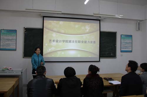 为贯彻落实学校学工部关于加强学生工作队伍建设文件精神,积极探索人才培养模式全面转型的新型学生管理模式,全面提升班主任职业能力和专业素养,艺术设计学院于11月19日、20日下午在创业楼119教室举办班主任职业能力竞赛。