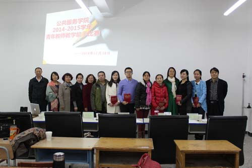 11月18日下午,公共服务学院在创新楼A607举办了2014-2015学年青年教师教学能手比赛,督导办副主任阎秉峰、教务处副处长韩冬梅、科研与技术服务处副处长解秀玉、公共服务学院院长李慧平、公共服务学院党总支书记李强作为评委出席了本场比赛,公共服务学院副院长马瑞庆主持比赛。