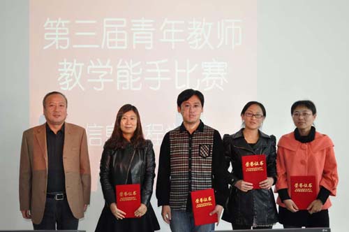 11月8日上午,信息工程学院举办第三届青年教师教学能手大赛,评委由信息工程学院领导班子及教务处师资培训科科长刘成玉老师担任,本次参赛的选手共有12名。参赛选手、观摩教师和评委本着“以赛促学,以赛促教”的教学理念和相互学习的态度,积极参与大赛,经过一上午的激烈角逐,最终评选出一等奖两名(并列),二等奖一名,三等奖两名(并列)的好成绩,学院将推荐第一名参加全校青年教师教学能手大赛。本次教学能手大赛丰富了教师业务活动,提升了整体教学能力,同时也给了教师展现自我的良好机会。