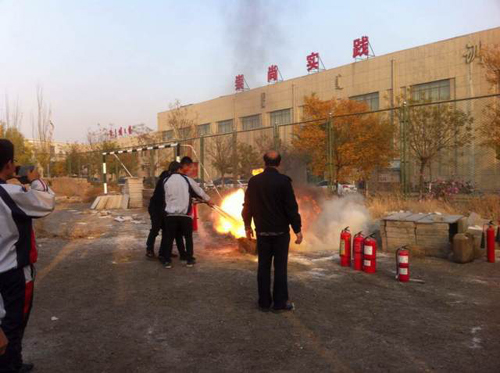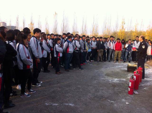 本次演习主要由保卫处尹永老师做现场总指挥,他首先认真的给同学讲解了引起火灾的原因及如何预防火灾的发生,讲解了遇到火灾的自求淘生途径,并在现场演示了灭火方法并让同学们进行了实际操作。