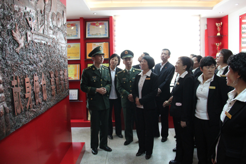 在活动仪式上,郭丽华馆长慷慨激昂的讲话让官兵和图书馆全体人员深受鼓舞。警民共建,把我们的服务延伸到更广阔的范围,是资源广泛利用的需要;是部队官兵们在紧张训练之后,充实自我,提升素质的需要;是文化拓展的需要;更是我们优质服务的需要。活动中,由大队领导和图书馆领导亲手将本次流动图书馆所赠图书递到了武警战士们的手中。活动结束后,在大队领导的带领下,全馆人员参观了军营,并与大队官兵合影留念。
