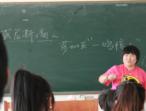 近日,附属中专学校积极开展党的群众路线教育实践活动,按照学院党委的要求,在做好规定动作的同时,将自选动作做精彩,坚决避免走过场、流于形式。附属中专学校在党员干部中开展了以“走好群众路线,树好党员形象”为主题的系列活动,图为青年党员教师王静在讲党员示范课。
