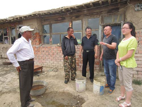 6月24日,乳品工程学院党总支书记雒亚洲和党总支成员到佘太河村看望了参加固阳县精准扶贫“三到村到户”攻坚工程的赵鑫老师。兴顺西镇党委副书记岳建军,佘太村村委书记张勇,村主任赵龙等领导们对赵鑫老师的工作高度认可,赵鑫老师工作有思路,踏实肯干,一心为民,目前正在做困难户的走访及各项统计工作,他在走访中发现村民高有亮家的土坯房墙体开裂,高有亮左手残疾无劳动能力,他已经争取到资金为其新建住房。覆盖七个自然村的村卫生室因为没有网络,村民买药、看病无法享受国家合作医疗的政策,赵老师正积极多方筹措,解决网络安装及提高医疗设备利用率的问题。