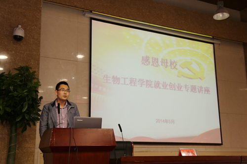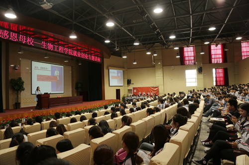 5月15日上午,为提高学生的就业能力,增强大学生创造意识和培养创新能力,破解创业难题,走出就业迷茫,生物工程学院邀请学院成功就业和创业的校友在国际会议厅举办了感恩母校——就业、创业专题讲座”。