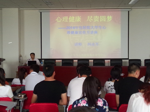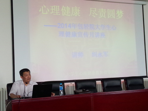 6月5日下午,农牧园林工程学院为了增强同学们对心理健康的关注,普及心理健康知识,提高心理保健意识和调适能力,特邀请学工部心理健康指导中心纠永军讲师,在图书馆509举办了 心理健康、尽职圆梦” 为主题的心理健康知识讲座,学生科所有教师及全院学生聆听讲座。