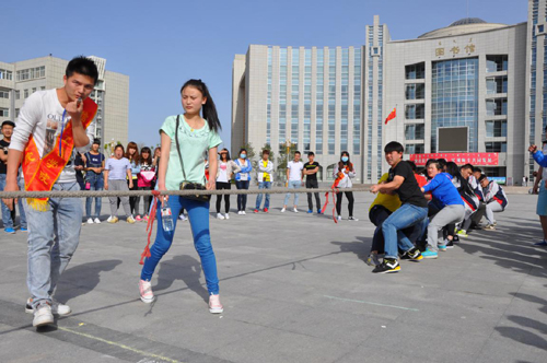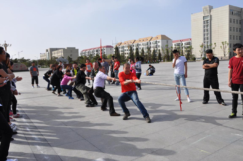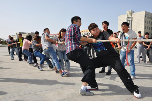 5月12日下午,信息工程学院按照院团委关于开展走下网络、走出宿舍、走向操场”的主题群众性课外体育锻炼活动,在教学楼前广场举行了师生拔河比赛。本次大赛以促进各年级、班级间交流为宗旨,丰富学生们的校园生活为目的,以比赛的形式为学生们提供展现集体风采的舞台,通过拔河比赛发扬团队精神,增强凝聚力。全体同学纷纷以极大的热情参与到此次活动中。