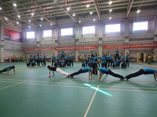 5月28日下午,在学院第二届教职工羽毛球比赛开幕式上,国际学院航空服务专业的同学们为大家带来精彩的健美操表演。同学们踏着激昂动感的音乐节拍,为全场师生奉上了一场青春时尚、激情四射的健身操表演,赢得了阵阵掌声。此次助演节目是同学们本学期形体训练课的成果之一,任课教师贺春燕老师给予了悉心指导。