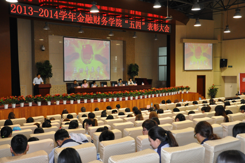 5月21日下午,金融财务学院在国际会议报告厅召开2013—2014学年五·四”表彰大会。学院院长郭永平、副院长乔雪芹、综合办公室主任连波、教研室主任李芝芬、全体班主任以及全体学生参加会议,会议由学生科科长李文策主持。