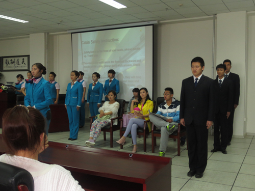 5月15日下午,在图书馆405报告厅,党委书记敖旭鹏,党委副书记、院长任雁秋,发展战略研究指导委员会副主任侯建平,组织人事处处长陈芳,公共服务学院院长李慧平,监察审计处副处长肖金桃,教务处副处长韩冬梅、管建慧等领导深入国际学院观摩高职高专英语教学改革情景模拟示范课。国际学院航空服务133002班同学在肖雪莲老师的指导下,为大家呈现了生动精彩的一课。积极响应学校人才培养模式转变号召,国际学院公共英语教学改革不断加大力度,教师更加注重实践将语言、生活、工作过程和礼仪融于一体的情境化教学,真正实现了教、学、做”一体化,积极发挥学生主动性、创造力,让学生成为课堂的主体,在动口、动脑中锻炼英语应用能力。