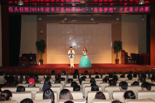 4月24下午,为进一步丰富校园文化生活,营造积极向上、百花齐放、健康文明的校园文化氛围,激发广大学生热爱艺术、勤奋学习、努力成才的热情与动力,展示同学们蓬勃向上的精神风貌,同时也给同学们提供一个锻炼自我、展示自我的机会和舞台,图书馆在国际会议厅举办了读书月系列活动之青春梦想”才艺展示大赛。