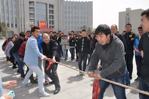 4月25日,经济管理学院苏宁杯”拔河比赛在教学楼广场举行,这标志着经济管理学院文体活动月活动正式拉开序幕。经济管理学院党总支书记、院长王高亮,副书记张锋及包头苏宁云商集团总经理出席了开幕式,苏宁部分员工及我院全体学生参加了拔河比赛,现场气氛热烈,最后经济管理学院学生代表队赢得了比赛。 本次活动是由经济管理学院主办,北京电信发展有限公司、包头苏宁云商集团公司、北京鼎极摄影有限公司协办。据悉,本次活动月至5月17日结束。活动月期间,将举办企业文化宣传讲座、拔河比赛、篮球赛、趣味运动会等活动,最后还将举办文体活动月闭幕式文艺汇演。 此次文体活动月活动将在提高学生人文素养、熏陶学生道德情操、丰富校园文化生活、加强校企合作中起到积极作用。通过此次活动能够使同学们更加了解企业,进一步推进校企合作的步伐,实现学校、企业、学生的共同发展。