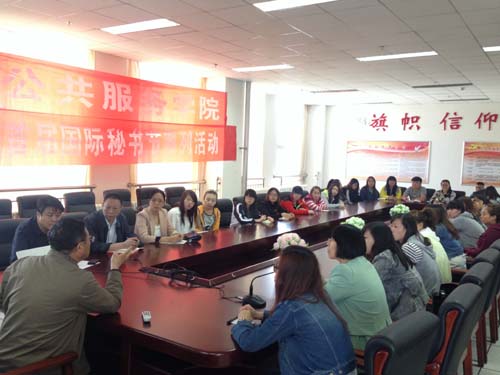 4月21日上午,公共服务学院特邀党委副书记、院长任雁秋同志在图书馆607会议室与文秘专业师生进行了近一个小时的座谈。此次座谈是为迎接学院首届国际秘书节而举办的其中一项活动,公共服务学院院长李慧萍、党总支书记李强及副院长马瑞庆参加座谈。