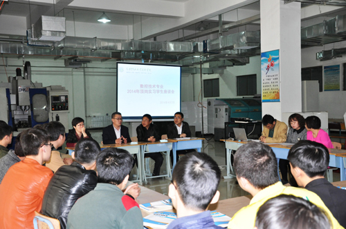 4月2日,汽车与机电工程学院在圈楼数控实训室举行了数控技术专业2014届顶岗实习学生座谈会。汽车与机电工程学院院长柏劲松,副院长、党总支副书记徐景山,副院长王瑞清出席座谈会,座谈会由数控教研室主任王继明主持,数控教研室全体教师、数控113031班顶岗实习学生代表、数控123032班、133033班和105010班全体同学参加了座谈会。