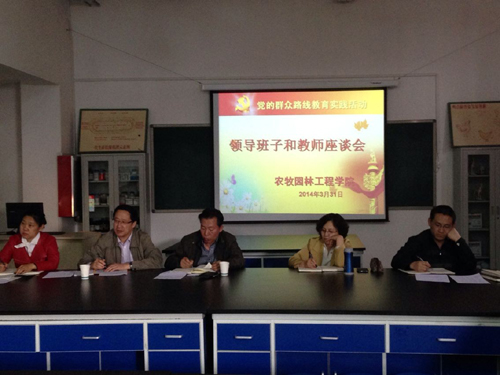 3月31日下午,按照学院党的群众路线教育实践活动调研安排,农牧园林工程学院在圈楼120室召开了学院领导班子与全体教师座谈会,教务长、教务处长禹文龙处长出席座谈会。座谈会围绕四风”问题,针对学院发展建设、教育教学改革以及服务学生等方面,本着为学院更好发展的目的征求了教师们的意见,全体教师畅所欲言。