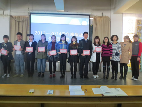 会上,参加汇报演讲的各位同学以生动的语言和张张精彩的图片向在场所有师生讲述了他们在社会实践中的种种感悟。同学们表示社会实践不仅使他们获得了劳动的快乐,而且增长了社会经验。汇报结束后,学院对评选的优秀实践报告者及学院各个学生社团的发起人进行颁奖。在过去的一年里,学生社团积极参与学院组织的各类活动、比赛,他们精彩纷呈的演出赢得了广大师生的喜爱和好评。此外,大会还对优秀班级、宿舍及在学校创业大赛中获奖的同学进行了的颁奖。学院领导老师们希望受到表彰的集体和个人再接再厉,更上一层楼,其他同学要以先进为榜样,继续努力,不断超越自我。