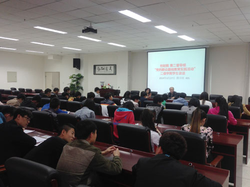 按照学院党的群众路线教育实践活动领导小组的统一要求,第二督导组目前已经完成了与各联系单位党员的谈话活动。本次学生座谈会旨在深入到学生中间,切实了解学生的所思所想,掌握大家的思想动态,解决实际问题。