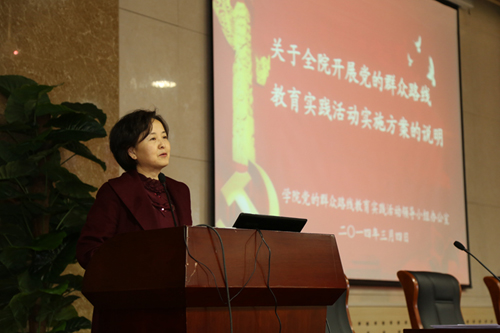 她强调,整个教育实践活动五个环节环环相扣、紧密衔接、要求具体,我们必须严格按照方法步骤,扎实推进。本次活动的主题为民务实清廉”,整个教育实践活动各个环节都离不开这一主题,也是我们每一名党员干部要时刻铭记在心的。为民就是要做到想师生之所想,解师生之所盼,干师生之所需,真正全心全意为师生服务,为学院建设发展服务。务实就是要掌握实情,实事求是、真抓实干,真正解决师生反映强烈、迫切想要解决的突出问题,真正解决影响学院发展、迫在眉睫的关键问题。清廉就是要清正廉洁,踏踏实实干事,清清白白做人。