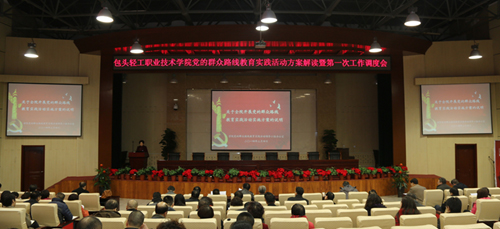 宣传统战部部长助理郑贵民对《包头轻工职业技术学院党的群众路线教育实践活动学习安排》和《包头轻工职业技术学院党的群众路线教育实践活动宣传工作方案》进行了详细讲解和安排部署。他强调,党的群众路线实践教育活动第一个环节就是学习教育、听取意见”,要抓好学习宣传”、思想教育”两大项内容;通过学习,尤其是集中学习,切实增强党员干部特别是领导干部的宗旨意识和群众观念。按照市里安排的规定动作,根据我们自己的实际,主要开展以下九项重点学习活动:举行一次学习传达讨论会;集中开展系列党课教育;(书记、总支书记)集中开展党的群众路线理论专题学习;以十本书为主理论学习组织开展群众观、教育观、四风”问题等讨论座谈活动;组织一系列党风廉政警示教育活动;集中开展深入思考、深入学习”系列讲座;撰写、刊发交流党员干部学习体会;集中观看《周恩来的四个昼夜》等党的群众路线教育影片;集中学习结束,进行测评考试。其次,教育实践活动的宣传工作要全覆盖,不留死角,从活动一开始就要让每一位教职员工、每一位学生都知道党的群众路线教育实践活动,开展灵活多样的宣传活动,积极营造舆论氛围,凝聚正能量。