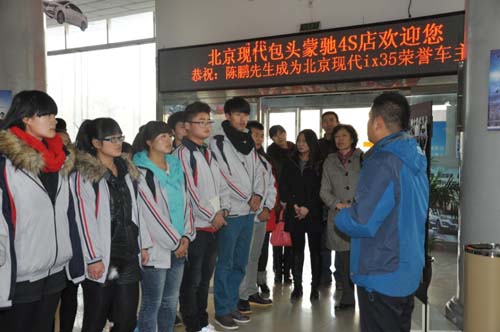 12月6日下午,为开拓汽车相关专业学生的视野,了解汽车4S店的工作流程,增强学生对汽车后市场服务的认识, 汽车与机电工程学院组织汽车技术服务与营销专业全体学生和部分汽修教研室老师,赴蒙通别克4S店、蒙俊现代4S店进行参观、学习。4S店的经理和员工对师生的到来表示热烈欢迎,并分别就4S店的经营理念、营运方式和整体发展情况做了介绍。学生们通过与4S店员工的近距离沟通、交流,深刻体会到专业技能掌握、职业素养养成的重要性,一致表示要珍惜在校时光,不辜负学校和老师的殷切希望。
