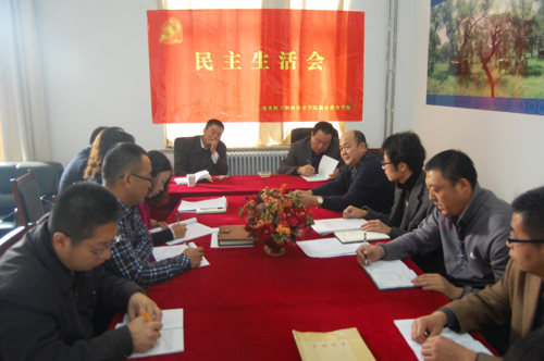 11月22日上午,继续教育学院直属党支部召开2013年度民主生活会,党委书记敖旭鹏,党委委员、副院长辛利民,党政办副主任张伟,继续教育学院院长白巴根那、副院长张丽芳及党员干部参加会议。