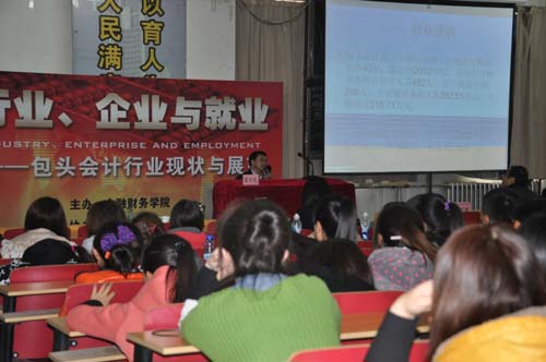 会上,苗秘书长向师生介绍了当前包头市财会行业、会计师事务所现状、发展形势、行业管理等情况,并对于学生学习、就业、发展做出了规划与建议。通过此次讲座,使广大师生的专业知识面得到了拓展,使学生的专业兴趣和学习的自觉性得到了提升,为学生今后的学习和职业规划提供了很多有用的信息。