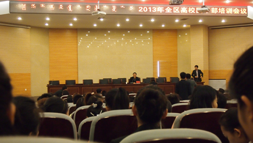 4月1日,内蒙古自治区团委学校部组织的全区高校团干部培训会议在内蒙古工业大学举行,全区各高校团干部代表参加本次培训大会,我校团委全体人员参加了此次培训。