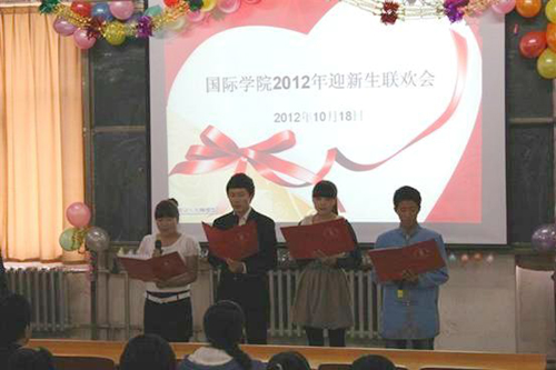 10月18日下午,国际学院在教学楼608召开2012年新生联欢会暨表彰大会。