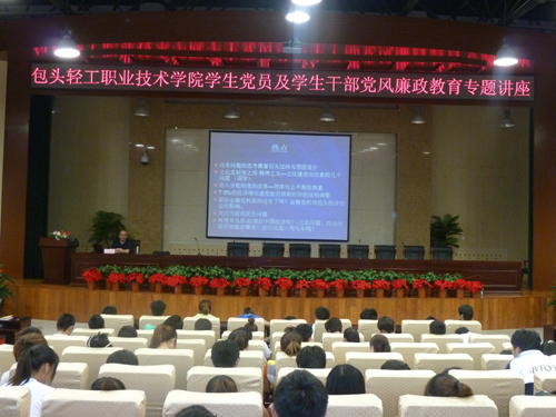 为全面推进校园廉政文化建设,传播廉政知识,弘扬廉政精神,培养学生敬廉崇洁意识,引导学生逐步形成廉洁自律、爱岗敬业的职业观念,为学校创造一个健康向上的教育学习氛围。6月21日下午,学校监察审计处邀请包头市委党校王永明教授,在图书馆一楼国际会议厅为学生党员及学生干部进行党风廉政教育专题讲座。监察审计工作人员、学工部相关教师及学生党员和学生干部等共300多人聆听了讲座。讲座由学院纪委副书记、监察审计处处长刘青山同志主持。