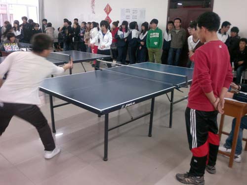 本次比赛设有两个项目:男子团体和女子团体。比赛分为淘汰赛和循环赛,采取三局两胜制,每局11分。比赛过程中,参赛选手本着公平竞争”的原则,真正实践了友谊第一,比赛第二”的精神,达到了通过进行体育比赛而锻炼自我、挑战自我的目的,增强了同学们之间的了解,加强了学院各系之间的沟通和互动。