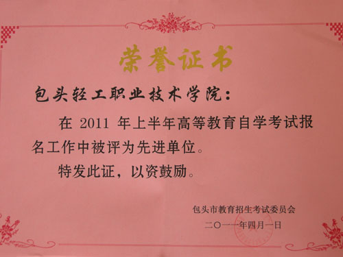 包头市2011年上半年高等教育自学考试考务工作会议于2011年4月1日在包头市教育局考试中心召开。我院继续教育部李强、司璟煜、倪振兴参加了会议,会议布置了今年上半年高等教育自学考试的相关工作,并对自考工作突出的单位和个人进行了表彰。我院获得了2010年下半年高等教育自学考试优秀考点称号和2011年上半年高等教育自学考试报名工作先进单位称号。白巴根那同志荣获2011年上半年高等教育自学考试报名工作先进工作者称号。