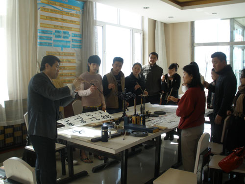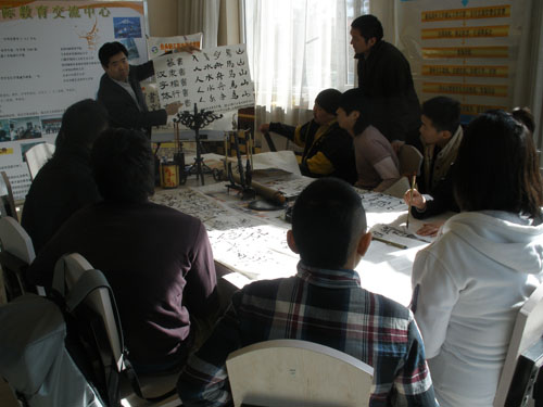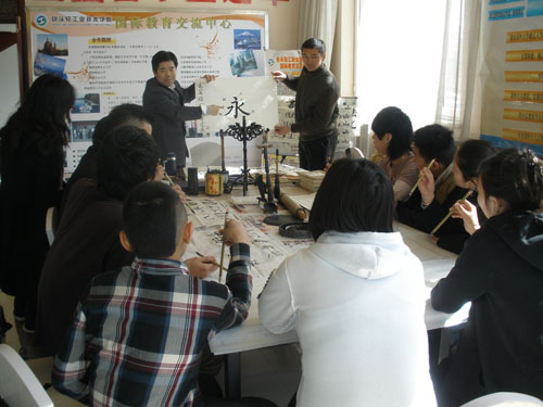 留学生们体验的第一节文化课,是由国际教育交流中心主任吕林旺主任亲自讲授的书法课。中国书法是一门古老的艺术,它伴随着中华文明的发展而发展。世界上拥有书法艺术的民族屈指可数,中国书法源远流长,具有悠久的历史,是中国古老文化的载体。听完吕主任的耐心讲解,同学们开始自己动手练笔画、写永”字,写自己的名字。个个神情专注、精心书写,兴趣高涨。