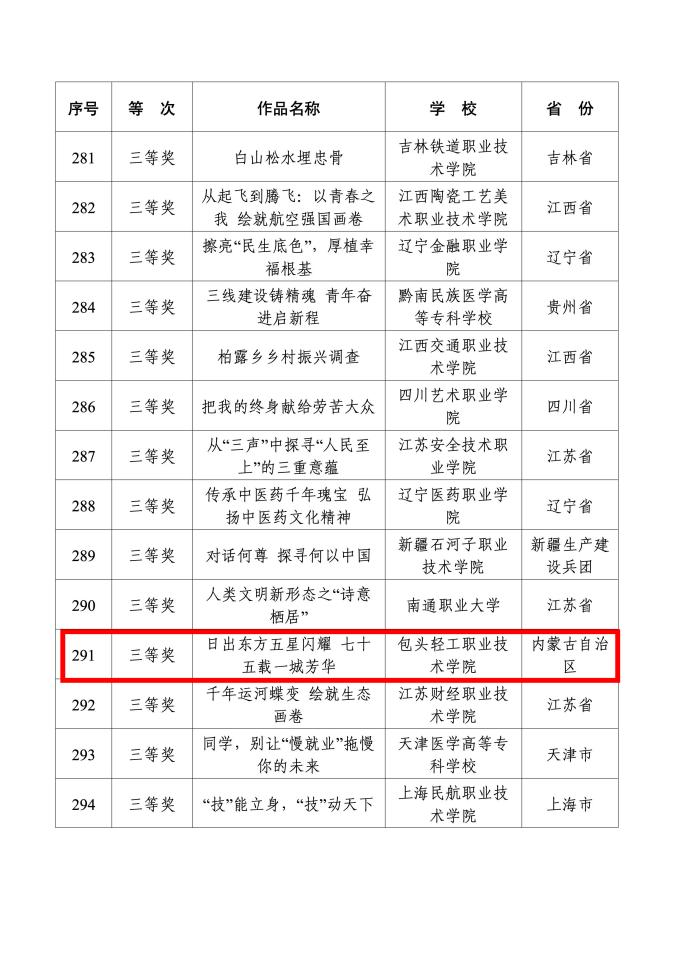 近日,教育部公布了第八届习近平新时代中国特色社会主义思想大学习领航计划主题教育活动获奖结果。我院马克思主义教学与研究部选送的参赛作品《额禽》《红色的嫩芽》分别荣获“第八届全国高校大学生微电影展示活动”长视频组二等奖与三等奖;《日出东方五星闪耀 七十五载一城芳华》获得“第八届大学生讲思政课公开课展示活动”高职组三等奖。