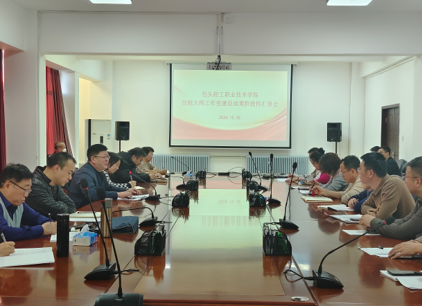 12月25日,学院召开技能大师工作室建设成果汇报会。学院党委委员、组织人事处(党委教师工作部)处长胡明主持并讲话。国家级技能大师李学飞、自治区级技能大师布日古德及 10 名校级技能大师参加会议。