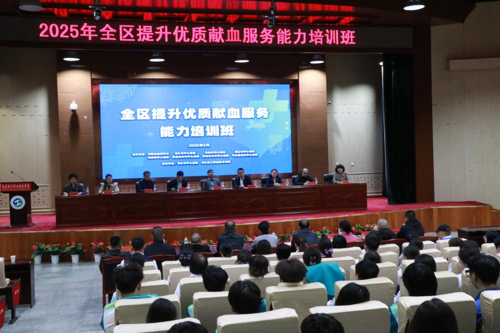 党委书记邵文祥向来自全区中心血站的医护人员表示热烈欢迎,详细介绍了学院的基本情况,从社会服务、人才培养、产教融合等方面阐释了学院的办学成果。他表示,学院始终秉持高度的社会责任感和使命感,大力支持并推动全体师生参与无偿献血工作。邵书记向培训班全体学员提出三点希望和要求:一要珍惜学习机会,充分利用培训的时间,认真学习、深入思考,不断提高自己的医疗专业素养和业务能力。二要进一步加强交流互动,共同探索在提升献血服务能力的新思路、新方法。三要学以致用,推动无偿献血事业发展,通过参与实践锻炼,将书本理论转化为实战经验。希望全体学员在培训期间,能够学有所获、学有所成、学有所用,为无偿献血事业发展添砖加瓦。
