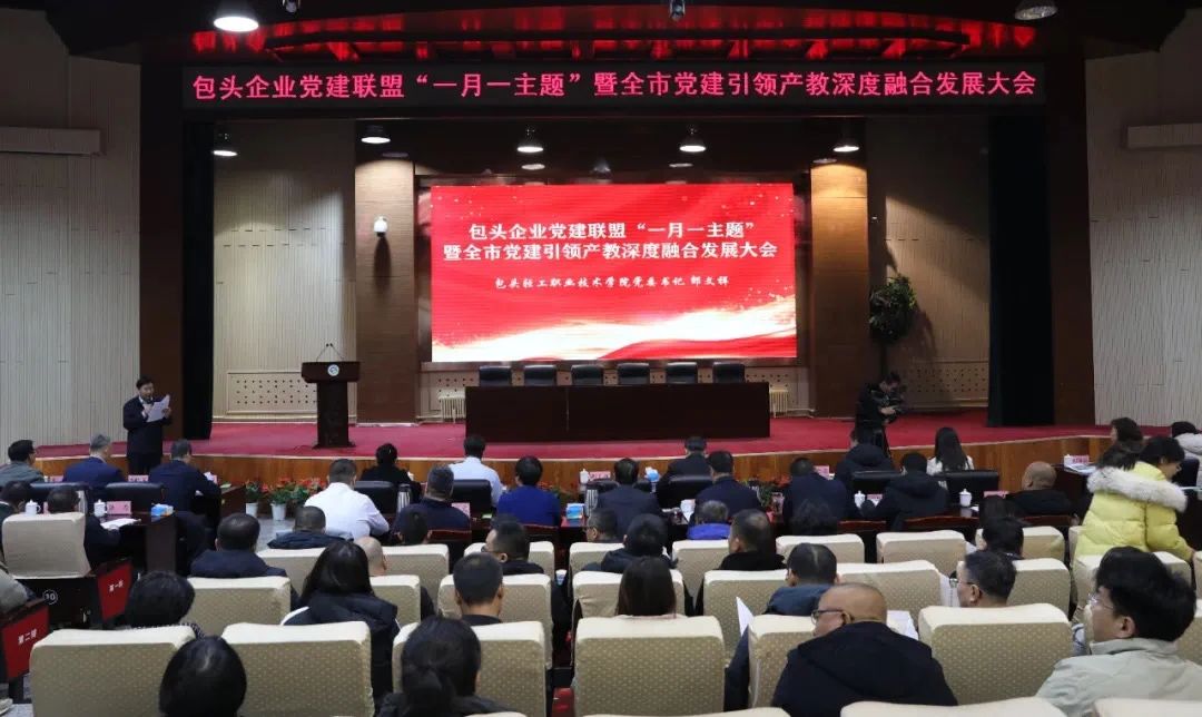 图3 包头企业党建联盟“一月一主题”暨全市党建引领产教深度融合发展大会在包头轻工职业技术学院举行