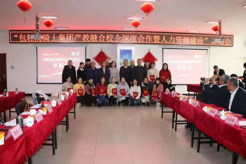 骑士集团和包头轻院为了加强各自人才队伍特别是技能人才队伍的建设,11月29日上午,骑士集团与包轻院联合举办了“包轻院骑士集团产教融合校企深度合作暨人力资源建设”启动会,骑士集团综合部部长郝素梅主持会议。包头市人社局职业能力建设科科长米瑶、土右旗人社局党组成员、就业服务局局长安成春、包头轻工职业技术学院副院长张延明、乳品农牧工程系主任张丽芳、骑士集团常务副总敕勒川糖业总经理高智利及结对的轻院老师和企业员工出席会议.