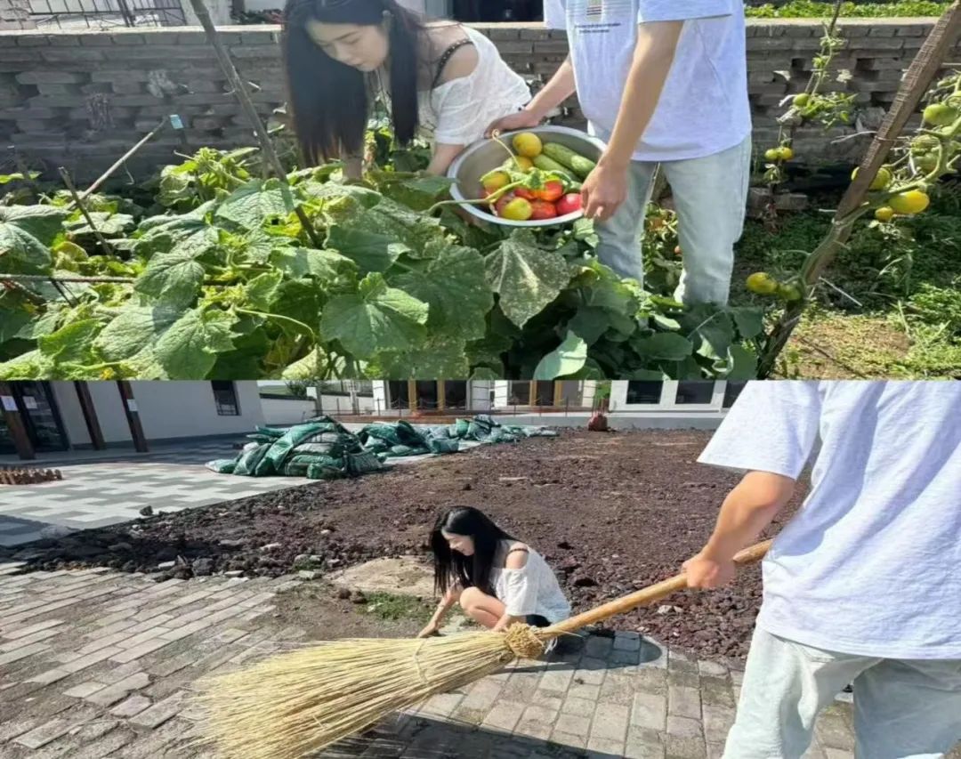 菜园里,学生们帮助村民采摘成熟的蔬菜,结合专业知识,为村民讲解科学的种植方法和病虫害防治技巧,帮助村民提高蔬菜的产量和质量。同时,他们还积极参与乡村的环境卫生整治工作,拿起扫帚清扫街道,清理卫生死角,向村民宣传环保知识,带动村民一起打造整洁、美丽的乡村环境。